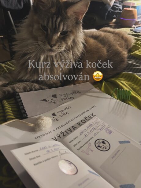 Za mě kurz doporučuji všem, kdo to myslí s kočičí výživou vážně. A moje Aryia mi po návratu z kurzu hned schválila certifikát – jen se trochu zlobila, že jsem nedonesla žádné dobroty.